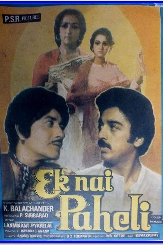 Ek Nai Paheli is a 1984 Hindi-language Indian feature film directed by K. Balachander, starring Kamal Haasan, Raaj Kumar, Hema Malini, Padmini Kohlapure and Suresh Oberoi. Ek Nai Paheli is an emotional family drama on unusual relationship. The movie is a remake of the Tamil classic Apoorva Raagangal directed by K. Balachander, incidentally called the shots for Hindi version too. Upendranath, a widower lives a wealthy life and his only son, Sandeep is a headstrong and stubborn young man. He leaves his dad's house to make his own life. He meets a beautiful older woman Bhairavi who is a singer. Both Bhairavi and Sandeep fall in love with each other and decide to marry, but a man, Avinash now arrives and claims as the husband of Bhairavi, moreover he meets Sandeep as well and tells his story. He also speak about their daughter, Kajri. Climax reveals that, Kajri lives with the much older Upendranath and plan to marry as well. What would be the fate of Bhairavi, Sandeep and Avinash??