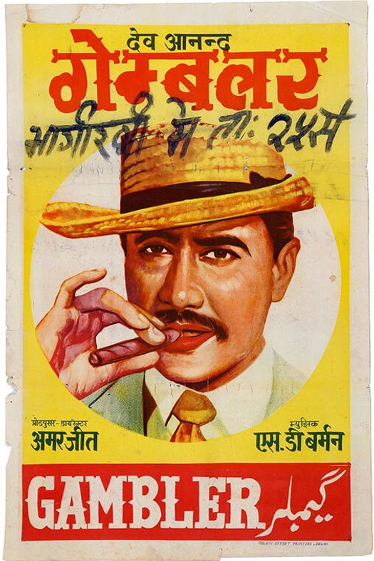 Raja (Dev Anand) has been abandoned by his biological mother at a very young age, and grows up with Master (Jeevan), a criminal don and card-sharp, who would like Raja to continue working with him on a commission basis. Raja learns all that could be learned about playing cards, quits work with Master, and starts work on his own. He succeeds considerably, and soon gets rich and wealthy. He falls in love with beautiful Chandra Gangaram (Zaheeda), and would like to marry her. But her father would like her to marry U.K. settled Ram Mehta(Sudhir), before Raja could do or say anything against this alliance, he is charged with the cold-blooded murder of Master. The climax in Raja's life is in the Court Room where he will find out about his past, and about his parents - while he awaits the outcome of the trial. From http://en.wikipedia.org/wiki/Gambler_(film)