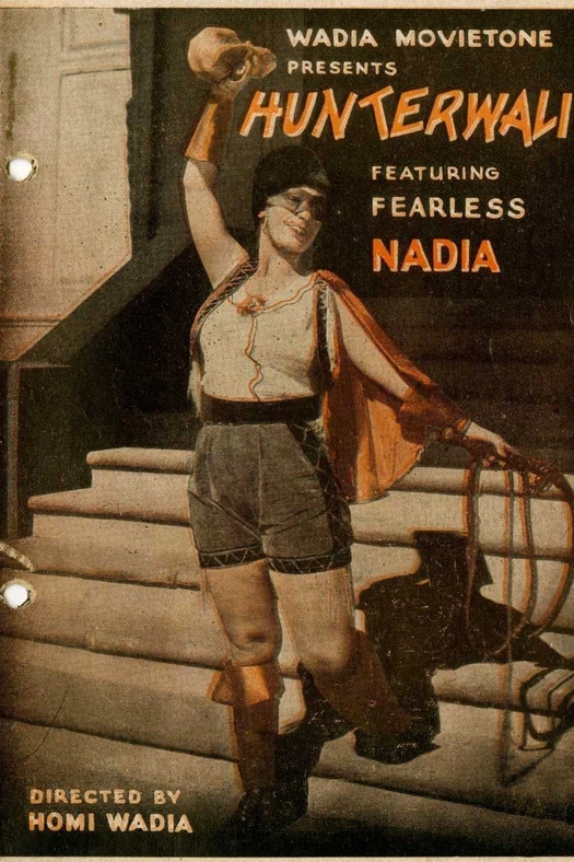 Preceded by a legend describing its heroine as a 'Brave Indian girl who sacrificed royal luxuries to the cause of her people and her country', the story opens with a prologue showing Krishnavati and her infant son being thrown out of the house in a thunderstorm by the wicked Prime Minister Ranamal who also killed her brother. 20 years later the now adult son, Jaswant, is hit by a royal motor car and given a bag of gold in compensation. His refusal of the gift attracts the admiration of Princess Madhuri. When the nasty Ranamal, who wants to marry her, imprisons her father the king, she becomes the masked Hunterwali, 'protector of the poor and punisher of evildoers', and performer of stunts like jumping over a moving cartand fighting 20 soldiers at once. She steals Jaswant's prize horse, Punjab, but returns it later. Jaswant chances upon a nude Hunterwali bathing in the river and after a long duel captures her and takes her to Ranamal to claim his reward.