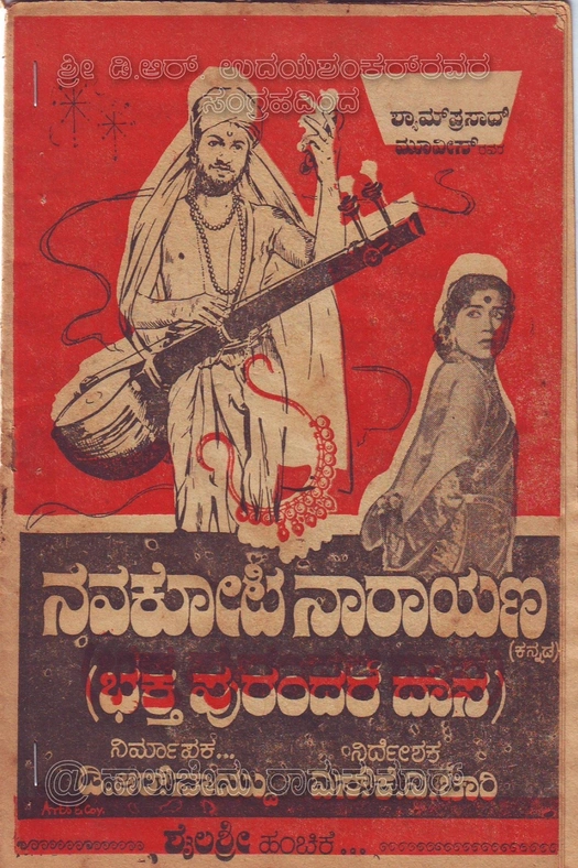 Navakoti Narayana is a 1964 Indian Kannada-language film directed by S. K. Ananthachari starring Rajkumar and Sowcar Janaki. The film is based on the life of Purandara Dasa, a prominent composer of Carnatic music who lived from 1484 to 1564. In the film, Rajkumar plays the role of Purandara Dasa. The music of the film was composed by Shivaprasad. This was the second Kannada movie on the life of Purandara Dasa after 1937 movie Purandaradasa.