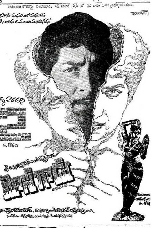 Mosagadu is action drama based movie in which, Chiranjeevi acted as a villain in this movie for the first time in his career.Sobhan babu and sridevi, who are in love with each other plan to marry soon . Chiru is a local rowdysheeter in their area who has a relationship with sridevi’s twin sister(dual role).Sridevi tries to keep herself away from his twin sister’s life style and sobhan decides to give her new life by marrying her. But, chiru has his eyes on sridevi also,but gets bashed up by sobhan few times.He develops personal grudge against them.Oneday, when sobhan and sridevi are about to get married in a temple,chiru spots her alone waiting for sobhan and he rapes her. Unable to bear this humiliation, she commits suicide and before she dies, sobhan reaches there and he vows to take revenge.In the end, sobhan kills chiru and is sentenced to death, and we are shown that sobhan meets sridevi in heaven.